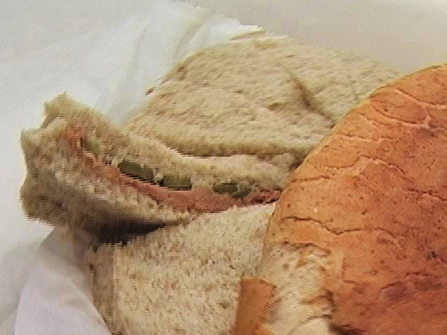 Пикник удался, если вы взяли с собой сэндвич «Сюрприз».Состав:соленое масло — 100 гр;ветчина — 150 гр;сыр — 150 гр;булка — 1 штука;немного утиного паштета и маринованых огурцов.